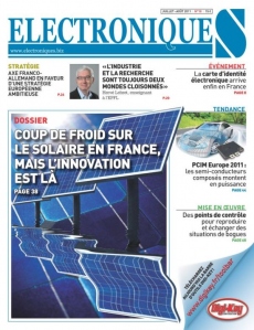 Découvrez la une et le sommaire de l’édition de juillet-août de notre revue ElectroniqueS. Dans ce numéro, nous vous proposons notamment un dossier très complet faisant un état des lieux de la filière photovoltaïque en France qui souffre des récentes décisions gouvernementales mais conserve de sérieux atouts, en particulier l’innovation technologique.