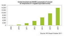 Les téléphones portables demeurent le débouché le plus dynamique pour les fournisseurs de mémoires Dram. D’après une étude publiée par la société d’analyse IHS iSuppli, les ventes mondiales de mémoires Dram pour smartphones vont passer de 1,7 milliard de Gbits en 2011 à 13,9 milliards en 2015.