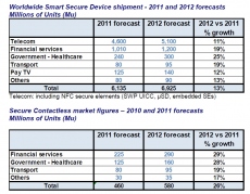 Eurosmart estime en outre que le déploiement de la technologie sans contact NFC, qui a véritablement démarré en 2011 en Europe, débouchera sur une forte croissance en 2012, avec un marché de 80 à 120 millions de terminaux NFC en 2012.