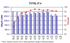 Selon le Sicas (Semiconductor International Capacity Statistics), le taux d’utilisation des capacités de production des usines de circuits intégrés dans le monde a légèrement baissé pour atteindre 91,3%% au troisième trimestre 2011, contre 92,2% au deuxième trimestre, alors qu’elle avait grimpé jusqu’à 95,8% au deuxième trimestre 2010.