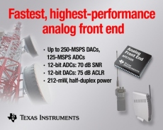 Conçu pour les micro-stations de base et les applications de radio logicielle, le frontal analogique AFE7225 de Texas Instruments intègre des doubles CAN et CNA 12 bits et de nombreux blocs de traitement du signal numérique. A destination des petites stations de base femtocellules, picocellules et des appareils portables mettant en œuvre une technique de radio logicielle, Texas Instruments a dévoilé un frontal analogique de hautes performances.