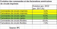 Par familles de produits, en janvier dernier, les commandes de circuits imprimés rigides ont augmenté de 10,9% par rapport à janvier 2011, et les facturations ont diminué de 3,1%.