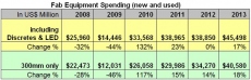 La dernière prévision de Semi annonce des investissements à hauteur de 38,85 milliards de dollars cette année. Les investissements dans de nouvelles constructions seraient de 4,5 milliards de dollars.