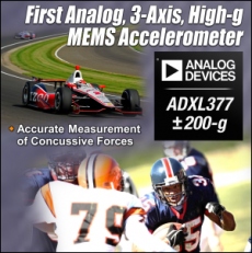 Analog Devices intègre trois axes de mesure d’accélération +/-200 g sur une puce