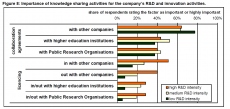 L’enquête porte aussi sur l’importance de différents moyens de partage des connaissances. La conclusion d’accords de collaboration avec d’autres sociétés apparaît comme le plus important d’entre eux. Les autres moyens de partage des connaissances que citent les entreprises actives dans des secteurs à forte intensité de R&D sont la prise de licences et la concession de licences à d’autres entreprises, puis les accords avec des établissements d’enseignement supérieur et d’autres organismes de recherche publics.