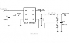 Il fonctionne à une fréquence fixe de 1,4 MHz. Le Mosfet et le réseau de compensation de la boucle sont internes. Optimisé pour une tension d’entrée de 12 V (le circuit accepte néanmoins une tension d’entrée située dans l’intervalle 4,5 V à 18 V), le XRP7659 est susceptible de fournir 1,5 A.
