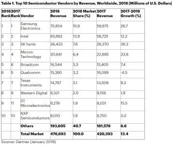 La croissance a été tirée par le marché des mémoires avec 34,8% du total des revenus de semi-conducteurs, contre 31%…