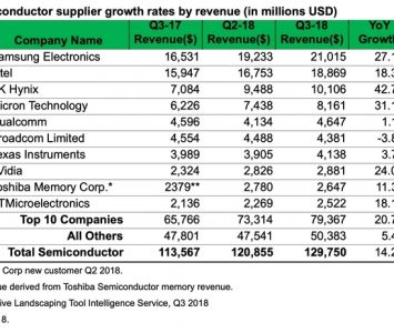 Samsung Electronics a continué de dominer le marché des semi-conducteurs au 3è trimestre, avec une part de marché de 16,2%,…