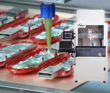 La machine Helios SD-960 de Nordson Asymtek a été conçue pour le dépôt de fluides divers (silicone, matériaux d’intefaces, résines…