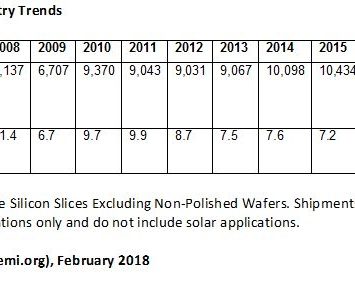 La surface totale des tranches de silicium livrées a atteint 11,810 milliards de pouces carrés, selon l’organisme Semi. (suite…)