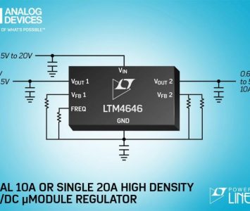 Conçu pour alimenter FPGA, Asic, GPU et autres microprocesseurs, le µModule LTM4646 d'Analog Devices est proposé dans un boîtier BGA…