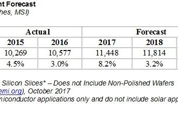 En 2017, la surface totale des tranches de silicium livrées atteindrait 11,448 milliards de pouces carré, selon l’organisme Semi. (suite…)