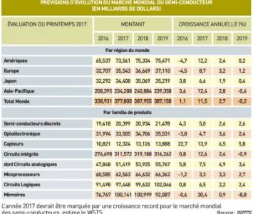 Le marché mondial des semi-conducteurs devrait atteindre 378 milliards de dollars en 2017 (+ 11,5%par rapport à l'an passé), selon…