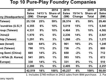 Ce marché a atteint 50 milliards de dollars. TSMC en représente, à lui seul, 59%, selon IC Insights. (suite…)