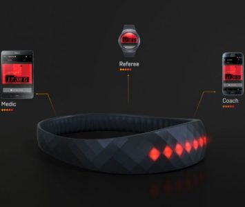 Le Brainband inclut des capteurs et des Led. Il réagit au choc en émettant un signal lumineux fonction de l’intensité…