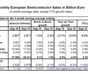 Malgré le bon comportement des ventes européennes en septembre, le marché européen des semi-conducteurs, exprimé en dollars, est nettement en…
