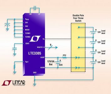 Apte à équilibrer jusqu’à quatre batteries au plomb de 12V en série, le LTC3305 inclut tous les éléments lui permettant…