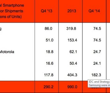Ventes de smartphones : Apple à égalité avec Samsung au 4è trimestre 2014