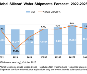 Selon l’association professionnelle Semi, les expéditions de tranches de silicium au niveau mondial devraient augmenter de 5,4% en 2025 avec…