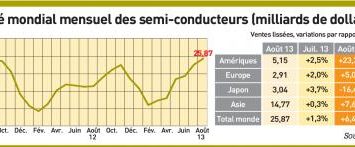 les ventes européennes de semi-conducteurs, exprimées en dollars, ont progressé de 5% en août par rapport à la même période…