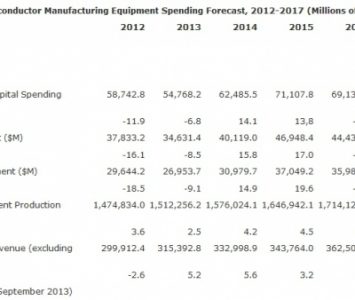 En août 2013, les facturations mondiales d’équipements de production de semi-conducteurs ont baissé de 4% par rapport à juillet 2013…