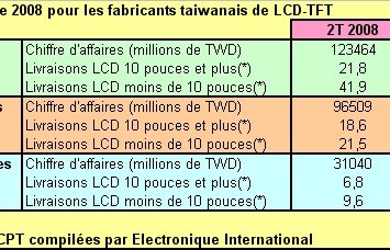 Le coréen LG Display (ex LG.Philips LCD) a réalisé un bon deuxième trimestre 2008 avec un chiffre d'affaires de 4211…