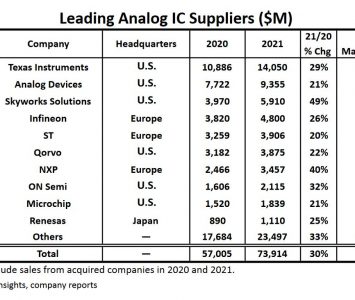 TI reste à la première place dans le palmarès des fournisseurs mondiaux de circuits intégrés analogiques dressé par IC Insights.…
