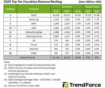 Selon le dernier rapport de TrendForce, le chiffre d’affaires des dix premières fonderies mondiales a augmenté de 14,6% au 2e…