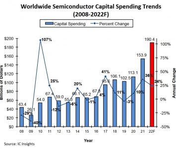 Les prévisions du cabinet d’études IC Insights font état d’une hausse de 24% des dépenses d’investissement (CapEx) en semi-conducteurs, pour…