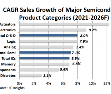 Selon le dernier bulletin du bureau d’études IC Insights, les ventes totales de puces devraient augmenter de 11% cette année.…