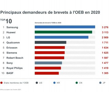 Les cinq pays les plus représentés en 2020 sont les Etats-Unis, suivis de l'Allemagne, du Japon, de la Chine et…