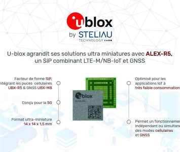 ALEX-R5, nouveau module ultra miniature 14 x 14 mm, avec 100% de technologies u-blox inside (cellulaire et GNSS) offre à…