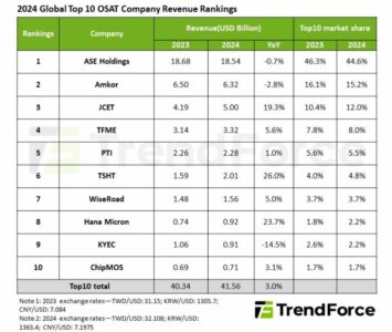 Le cabinet d’études TrendForce a dévoilé son classement des acteurs de l’encapsulation et du test (OSAT) en 2024. Le marché…