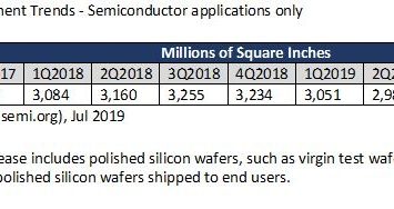La surface totale des tranches de silicium livrées a représenté 2,983 milliards de pouces carré, selon l’organisme Semi. (suite…)